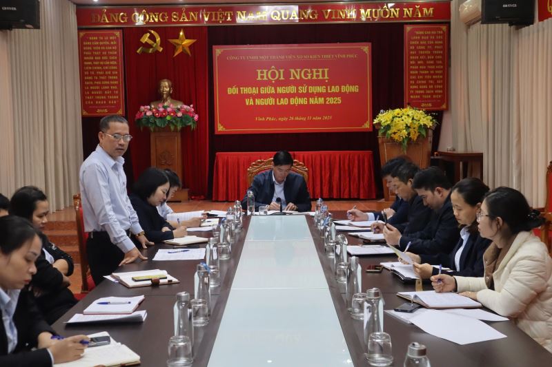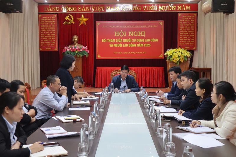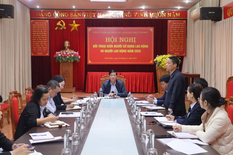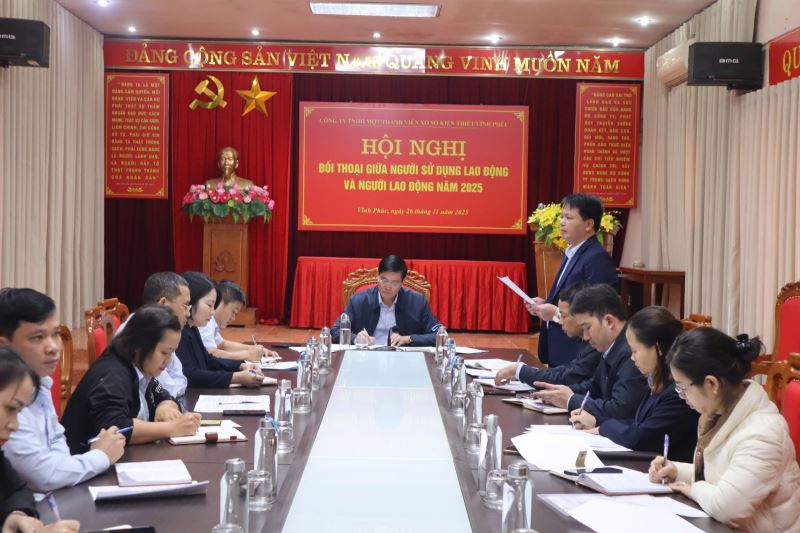 Thực hiện quy định của Bộ luật Lao động năm 2019 và Quy chế dân chủ tại nơi làm việc. Ngày 26/11/2025, Công ty TNHH một thành viên xổ số kiến thiết Vĩnh Phúc đã tổ chức Hội nghị đối thoại thoại giữa người sử dụng lao động và người lao động năm 2025.