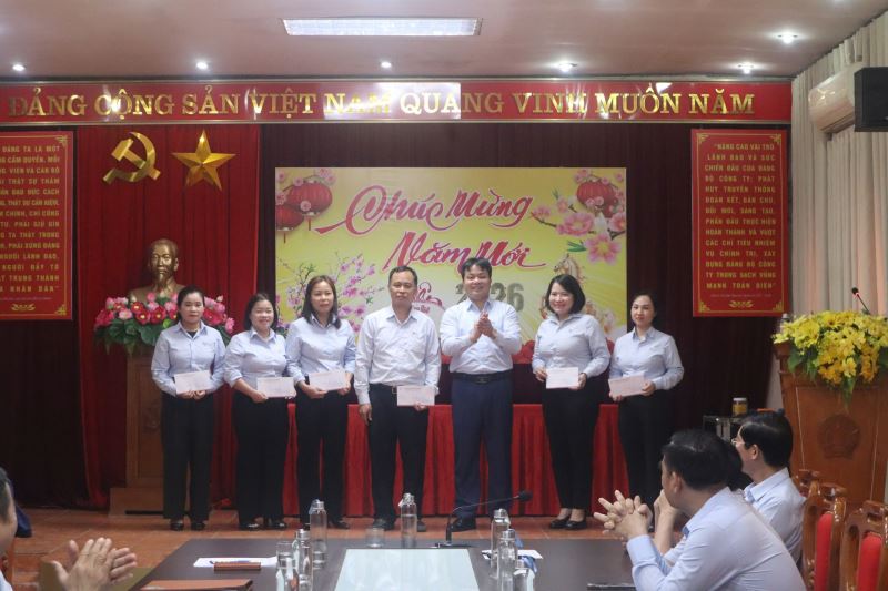 Đồng chí Nguyễn Trung Dũng – Phó Giám đốc công ty trao thưởng cho các các nhân phòng XSKT Phúc Yên tại buổi tổng kết thi đua bán vé dịp Tết Nguyên đán 2026
