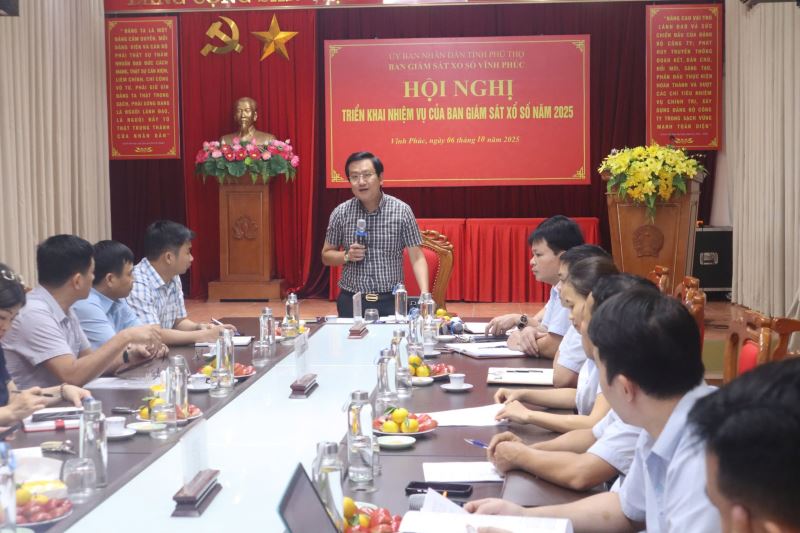 Thực hiện Quyết định số 1241/QĐ-UBND ngày 02/10/2025 của UBND tỉnh Phú Thọ về việc thành lập Ban giám sát xổ số Vĩnh Phúc. Để kịp thời triển khai nhiệm vụ theo quy định, chiều ngày 06/10/2025, Ban giám sát xổ số Vĩnh Phúc đã tổ chức Hội nghị triển khai nhiệm vụ và chính thức đi vào hoạt động.
