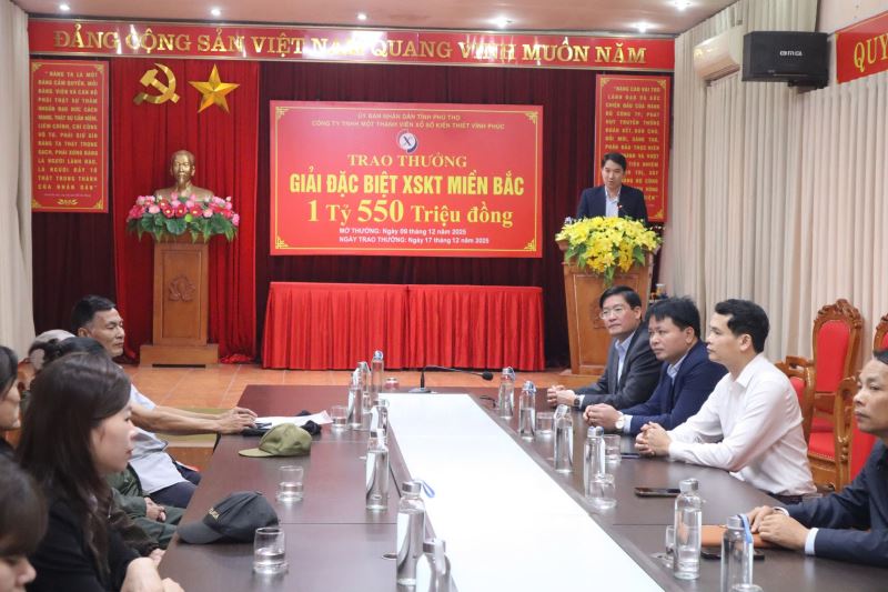 Sáng ngày 17/12/2025, Công ty TNHH một thành viên Xổ số kiến thiết Vĩnh Phúc đã tổ chức buổi lễ trao thưởng giải đặc biệt Xổ số kiến thiết (XSKT) miền Bắc mở thưởng ngày 09/12/2025.