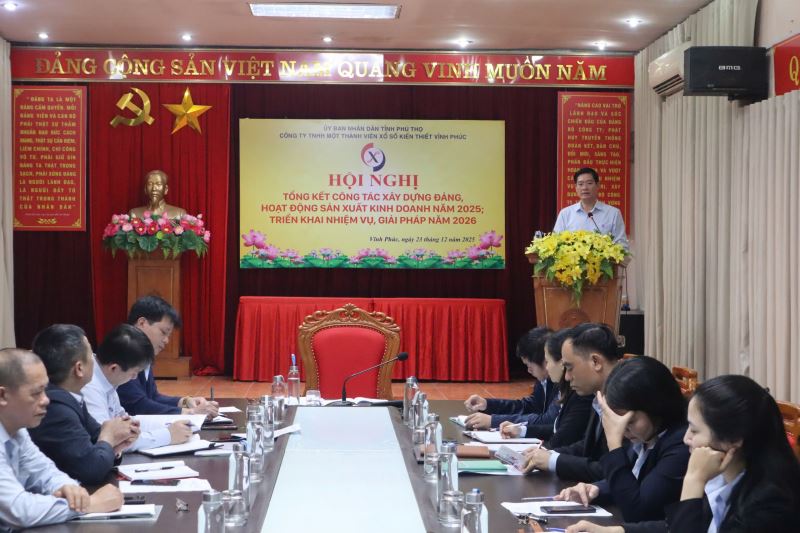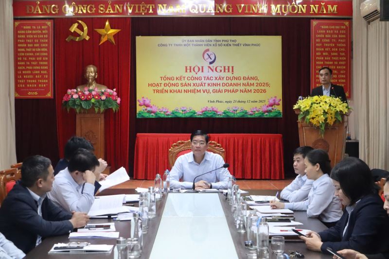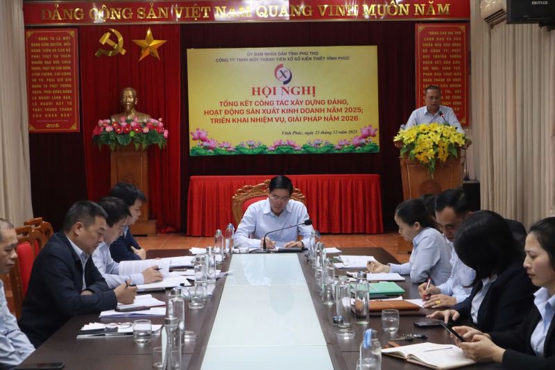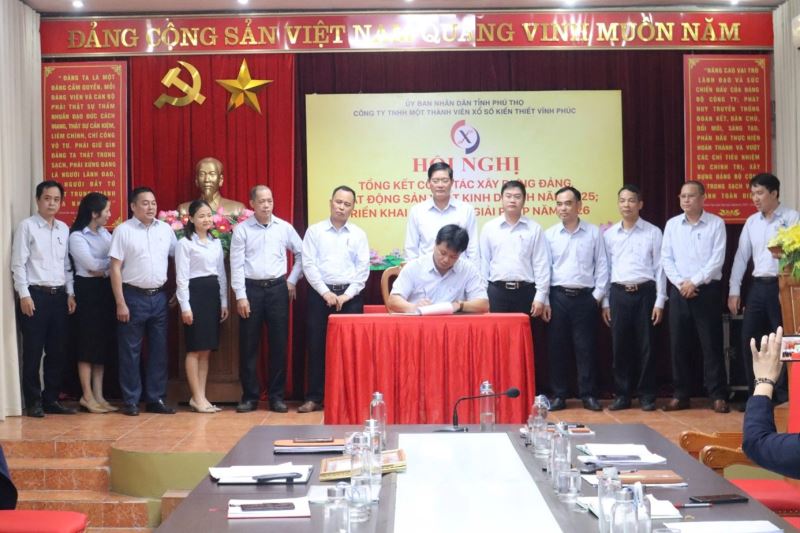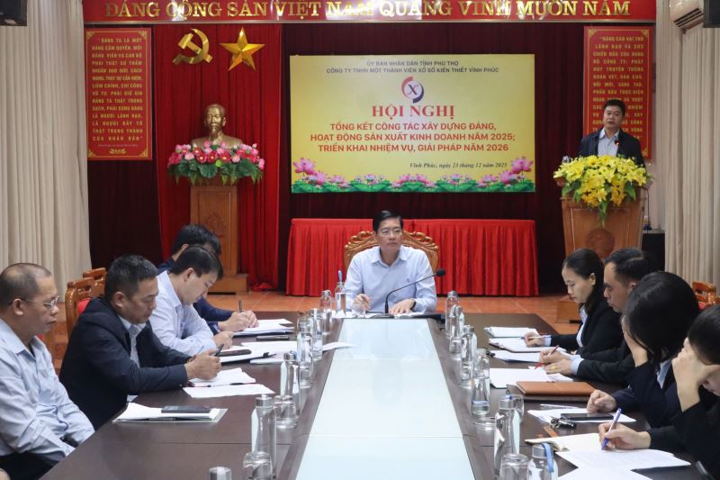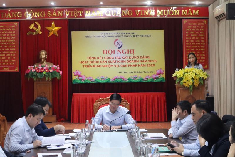 Thực hiện chương trình công tác năm 2025, sáng ngày 23/12/2025 Đảng bộ Công ty TNHH một thành viên xổ số kiến thiết Vĩnh Phúc tổ chức Hội nghị tổng kết công tác xây dựng Đảng, hoạt động sản xuất kinh doanh năm 2025; triển khai phương hướng nhiệm vụ, giải pháp năm 2026. Tham dự Hội nghị có các đồng chí trong Ban Chấp hành Đảng bộ, Ban lãnh đạo Công ty, Bí thư, phó Bí thư các Chi bộ, Trưởng, Phó các phòng, Trưởng các tổ chức đoàn thể cùng toàn thể đảng viên, người lao động trong toàn Công ty. Đồng chí Nguyễn Tuấn Hải - Bí thư Đảng ủy, Chủ tịch công ty dự và chỉ đạo hội nghị.