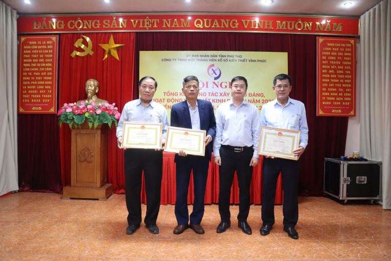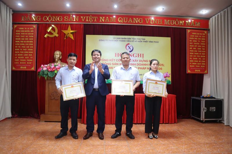 Với những thành tích đã đạt được trong năm 2025, Đảng ủy, Chủ tịch Công ty đã tặng Giấy khen cho các tập thể và cá nhân hoàn thành xuất sắc nhiệm vụ năm 2025. Giám đốc Công ty tặng Giấy khen cho các Tổng đại lý xổ số năm 2025