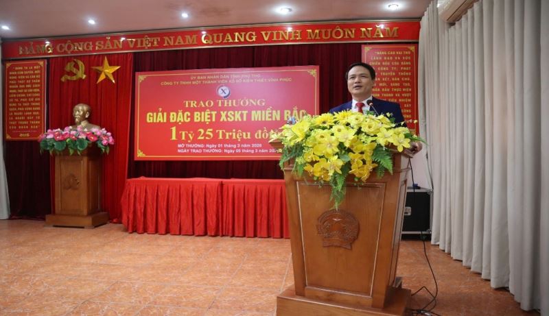 Sáng ngày 05/03/2026, Công ty TNHH một thành viên Xổ số kiến thiết Vĩnh Phúc đã tổ chức buổi lễ trao thưởng giải đặc biệt Xổ số kiến thiết (XSKT) miền Bắc mở thưởng ngày 01/03/2026.