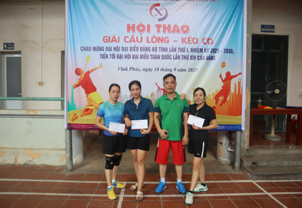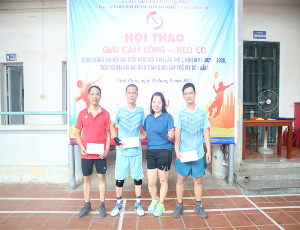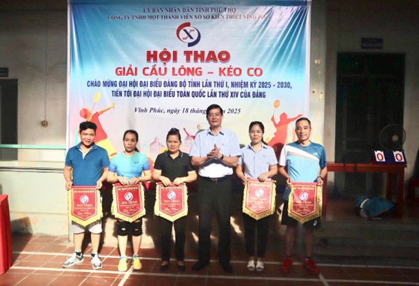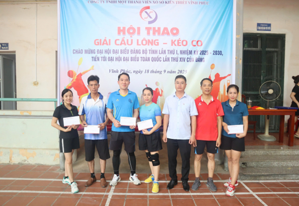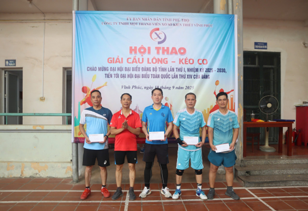 Căn cứ Kế hoạch số 05-KH/ĐU, ngày 25/8/2025 của Ban Thường vụ Đảng ủy Ủy ban nhân dân tỉnh Phú Thọ. Thực hiện ý kiến chỉ đạo của Bí thư Đảng ủy Công ty TNHH một thành viên xổ số kiến thiết Vĩnh Phúc về việc tổ chức Hội thao chào mừng Đại hội đại biểu Đảng bộ tỉnh lần thứ I, nhiệm kỳ 2025 - 2030, tiến tới Đại hội đại biểu toàn quốc lần thứ XIV của Đảng. Ngày 18 tháng 9 năm 2025, Công ty TNHH một thành viên xổ số kiến thiết Vĩnh Phúc đã tổ chức Hội thao giải Cầu lông – Kéo co với sự tham gia nhiệt tình của cán bộ, đảng viên, người lao động trong Công ty.