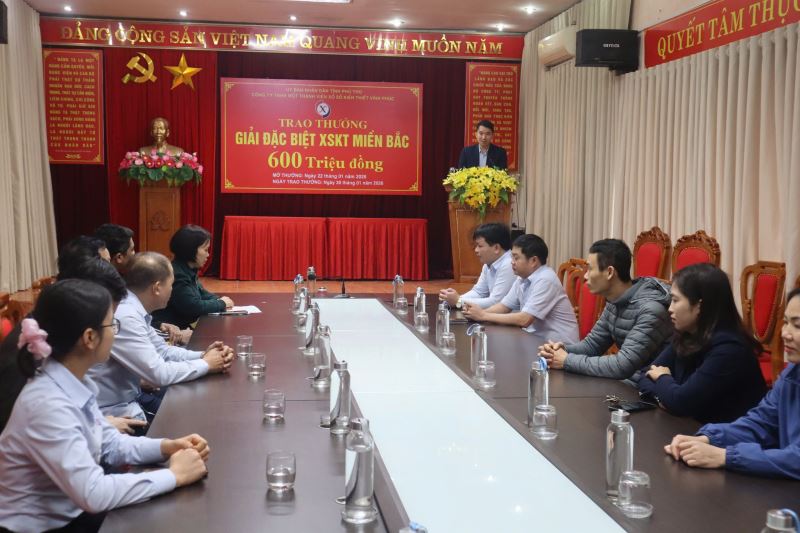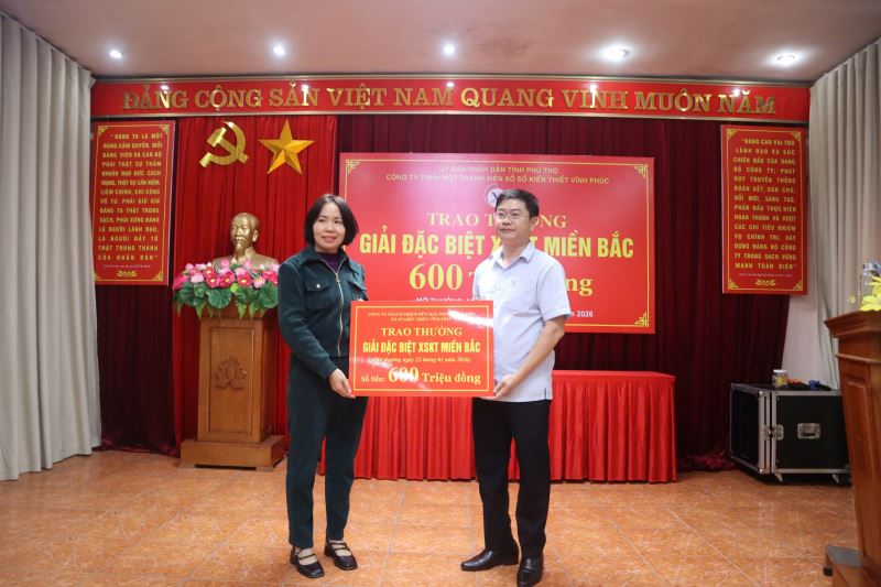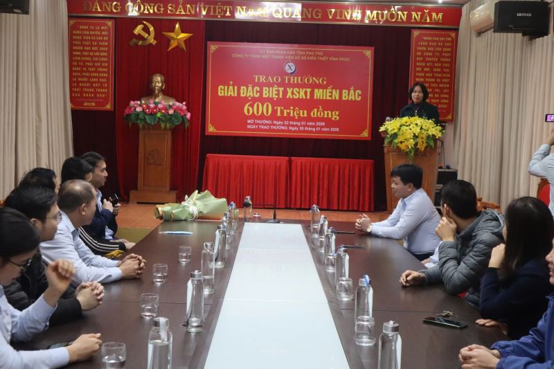 Sáng ngày 30/01/2026, Công ty TNHH một thành viên Xổ số kiến thiết Vĩnh Phúc đã tổ chức buổi lễ trao thưởng giải đặc biệt Xổ số kiến thiết (XSKT) miền Bắc mở thưởng ngày 22/01/2026.